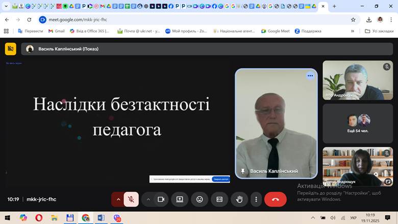 19 листопада 2025 року відбулася гостьова лекція Каплінського Василя Васильовича, доктора педагогічних наук, професора, професор кафедри педагогіки і освітнього менеджменту Вінницького державного педагогічного університету імені Михайла Коцюбинського на тему «Педагогічний кейс як інструмент критичного мислення та професійного зростання вчителя».