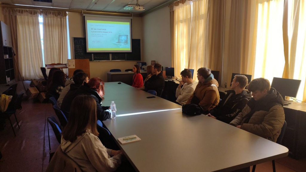 Під час лекції здобувачі вищої освіти дізнались про практичні аспекти інтеграції штучного інтелекту в освітній процес, зокрема про можливості використання АІ-інструментів для автоматизації рутинних завдань вчителя, розробки інтерактивних навчальних матеріалів та персоналізації навчання. Спікерка поділилася досвідом застосування генеративних моделей для створення візуального контенту в курсі та методичними рекомендаціями щодо використання чат-ботів як асистентів під час підготовки до уроків технологій та інформатики, що дозволяє сучасному педагогу значно підвищити ефективність викладання та залученість учнів.