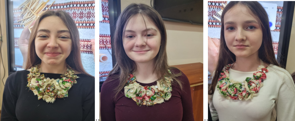 Учениці 9-го класу чудово справились із завданням і своїми творами надихнули директорку ліцею – Аллу КІЯЩУК, яку вразили результати цього майстер-класу – прикраси учениць і вона теж виявила бажання створити таку красу і з натхненням приєдналася до цього захопливого творчого дійства.