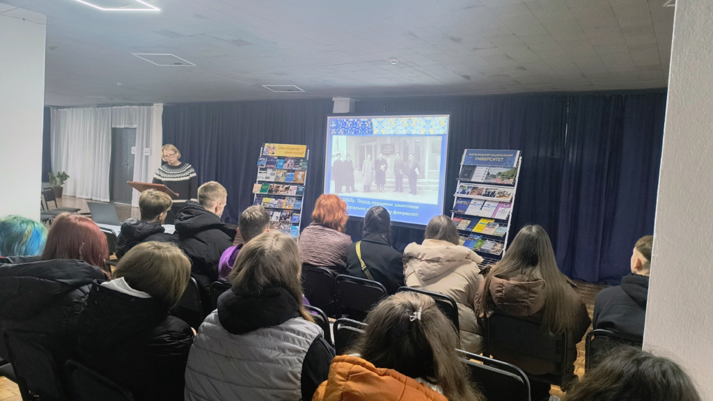 17 листопада 2025 р., у Міжнародний день студента, в науковій бібліотеці відбулася пізнавальна година «Історія Хмельницького національного університету. Як усе починалось…». На захід завітали першокурсники груп ПОТ-25-1, ДМ-25-1 (супроводжував здобувачів старший викладач кафедри технологічної та професійної освіти і декоративного мистецтва Богдан Крулик).