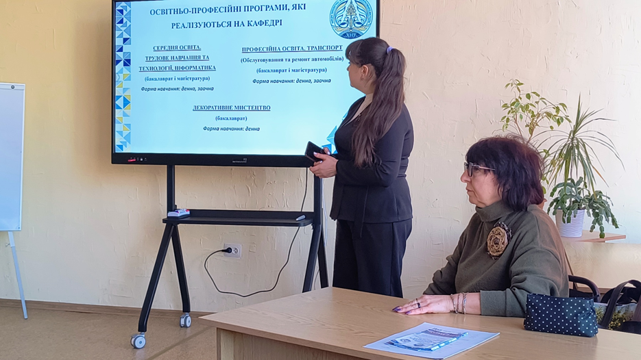 Із загальними умовами вступу до ЗВО цьогорічних випускників ознайомила завідувач кафедри, Олена САМБОРСЬКА й окреслила можливості навчання на означеній ОП, а також наголосила на перспективі академічної мобільності та професійного розвитку через неформальну освіту.