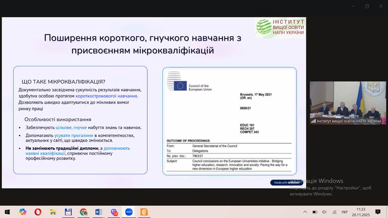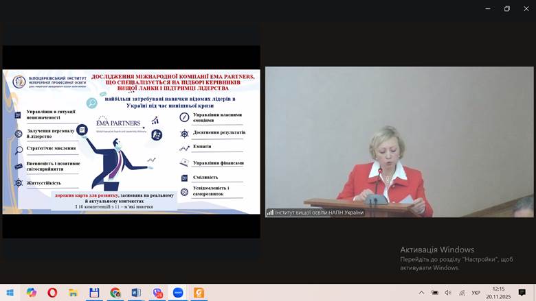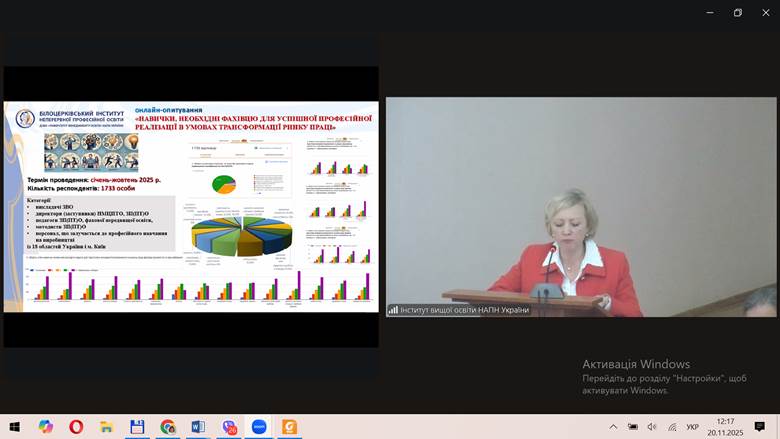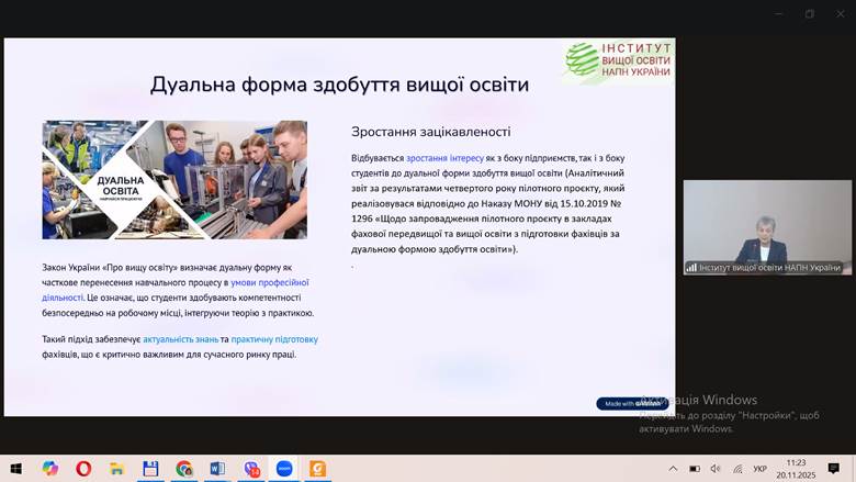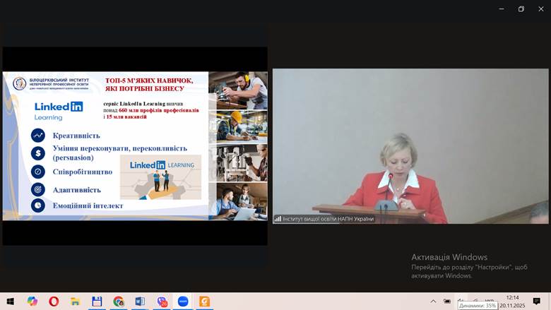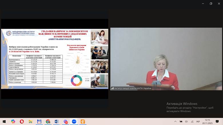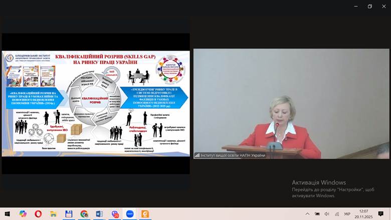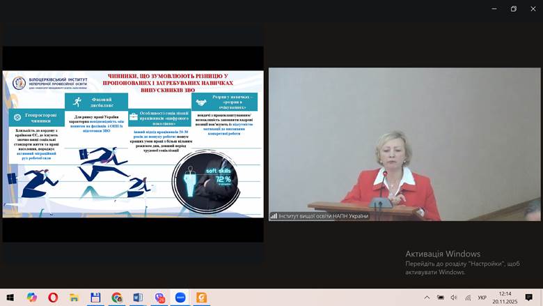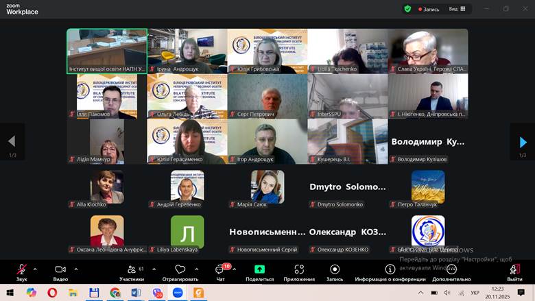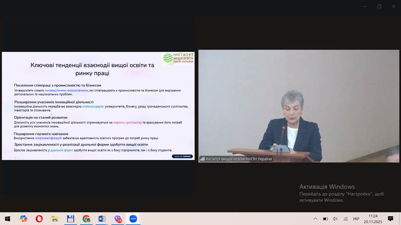 20 листопада 2025 року професори кафедри Андрощук Ірина та Андрощук Ігор взяли участь у Методологічному семінарі «Тенденції та особливості взаємодії вищої освіти та ринку праці в умовах війни та повоєнного відновлення України», проведеномувідповідно до плану роботи Національної академії педагогічних наук України