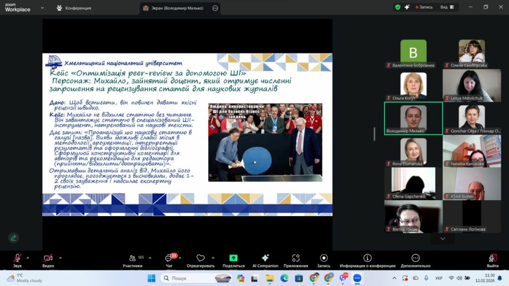 12. лютого 2026 року викладачі кафедри технологічної та професійної освіти і декоративного мистецтва взяли участь у вебінарі на тему «Політика використання штучного інтелекту у ХНУ», який з метою формування системного підходу до інтеграції технологій штучного інтелекту в освітній та науковий процес, підвищення рівня цифрової компетентності науково-педагогічних працівників і забезпечення дотримання принципів академічної доброчесності було проведено Центром післядипломної освіти.