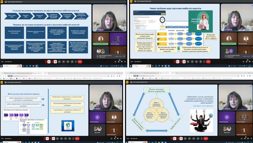 На пленарному засіданні з доповіддю «Забезпечення якості підготовки майбутніх педагогів у закладах вищої освіти» виступила д-р пед. наук, професор, завідувачка навчально-методичного відділу ХНУ Ірина АНДРОЩУК.