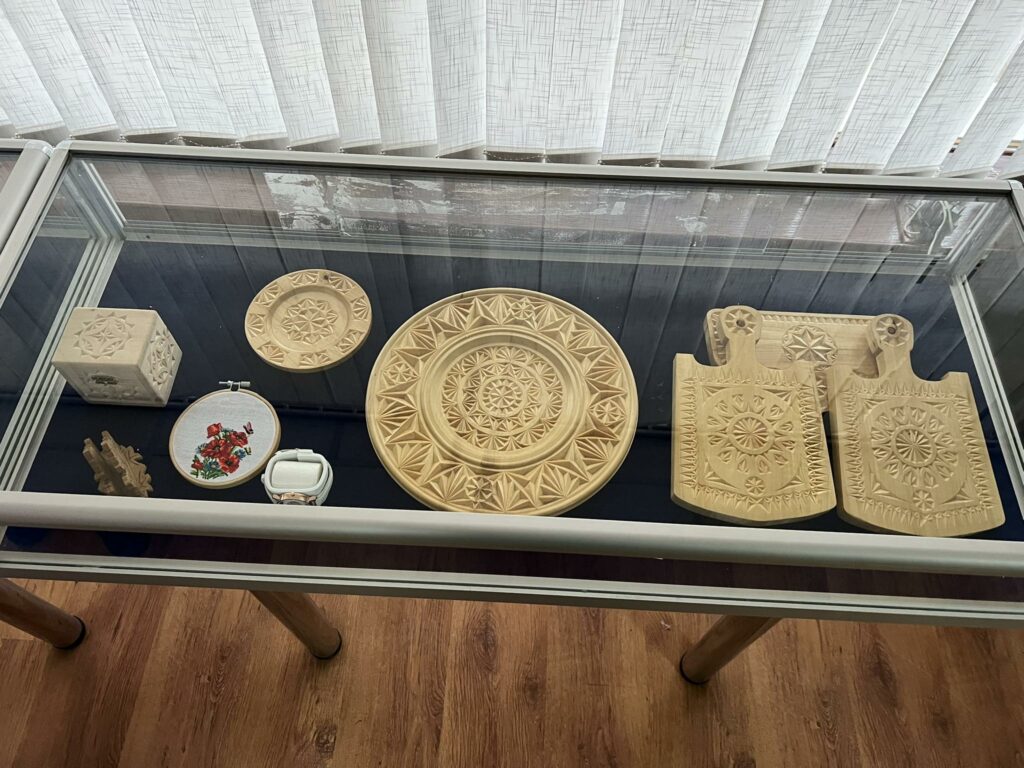 У виставці взяв участь й здобувач освіти за ОПП “Середня освіта. Трудове навчання та технології, інформатика” першого (бакалаврського) рівня Віталій Олійник. В експозиції виставки було презентовано сім виробів Віталія виготовлених з деревини та оздоблених геометричним різьбленням.