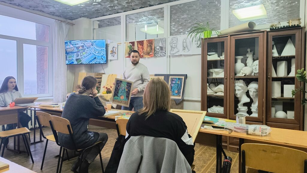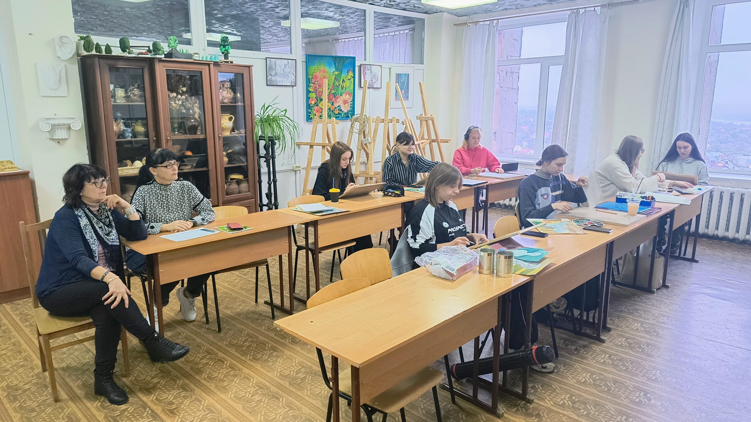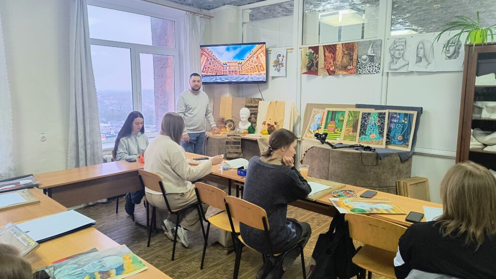30.09.2025. ОПП «Образотворче мистецтво. Декоративне мистецтво». Група ДМ-22-1. Дисципліна: Живопис. Тема практичного заняття: «Живописна стилізація натюрморту з гіпсовою головою». Викладач: Крулик Б.В. Присутні: Корницька Л.А., Хренова В.В., Пястук О.В.